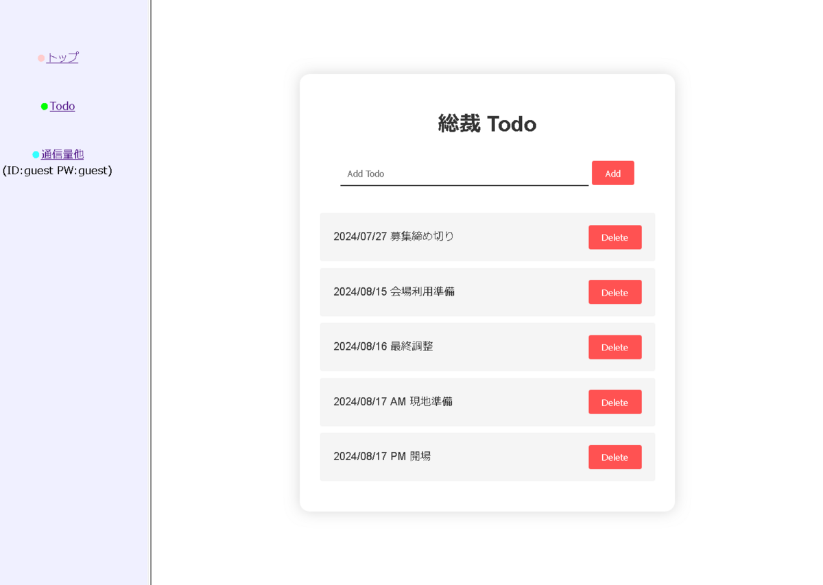 - Todoページ,トラフィック可視化サーバのDBを作成